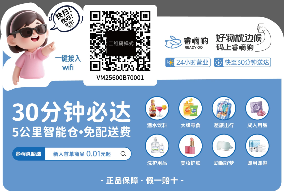 如果你是酒店经营者,想零成本开拓新收入、升级服务,睿嘀购是值得信赖的合作伙伴;如果你是消费者,无论是入住合作酒店时扫码下单,还是居家时搜索 “睿嘀购” 小程序,都能体验便捷与实惠。即时零售的美好体验,本就该随时随地触手可及。